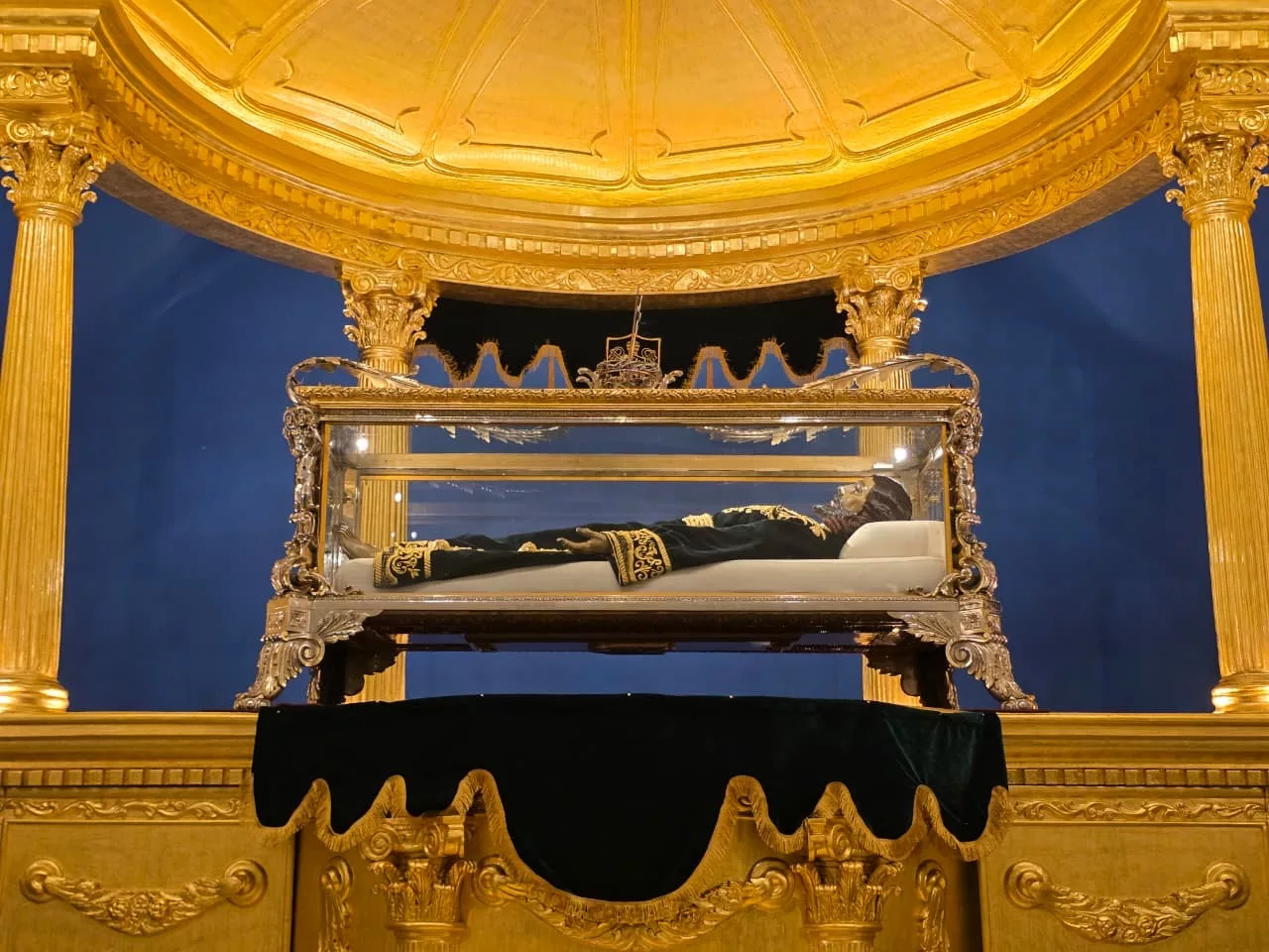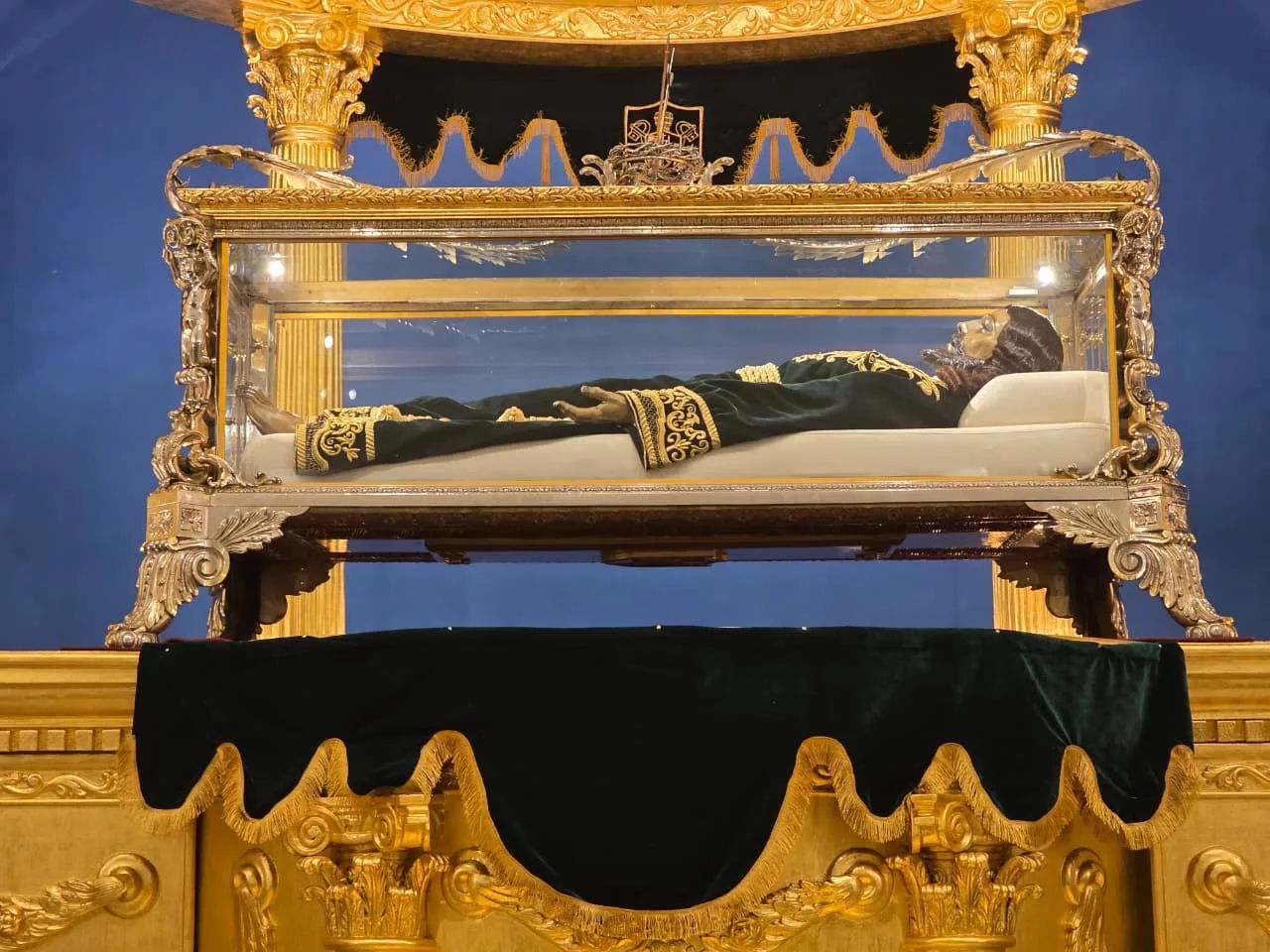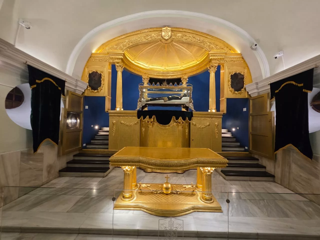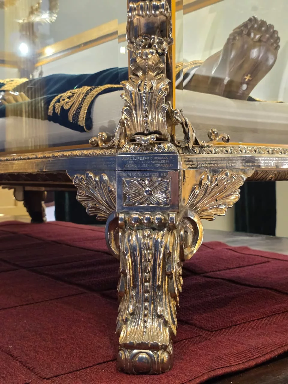 En la procesión del Santo Entierro de Cristo del Amor, que recorre solemnemente las calles de la capital el Viernes Santo, esta urna cobra vida: su brillo dorado, las luces que la acompañan y la fe del pueblo crean una escena profundamente conmovedora.
