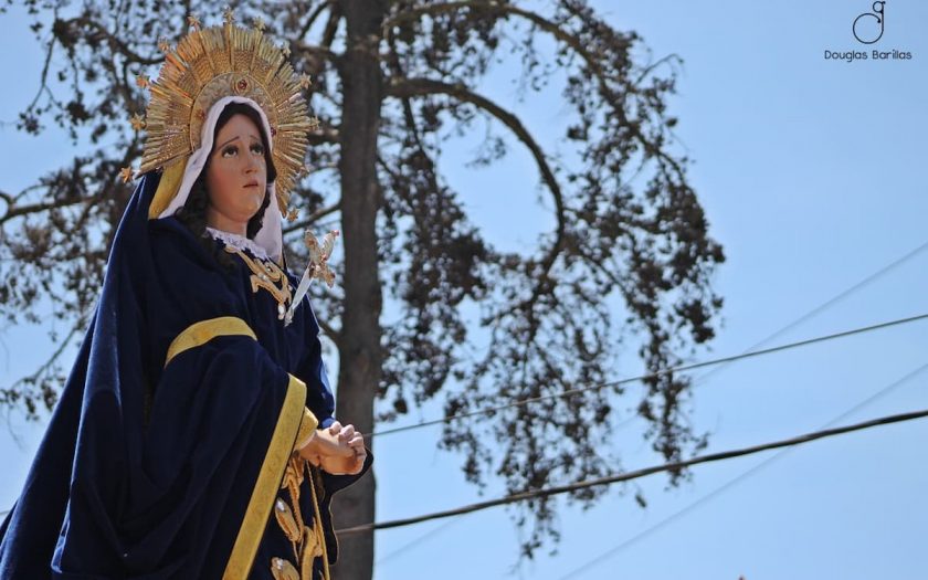 Esta escultura procesional, refrenda el dolor de un pueblo que encontrará una vertiente de expresividad por medio del dolor, la daga que atravesó el corazón de nuestra madre Santísima, así mismo, sus lágrimas, la que a la vez conduce al encuentro de una paz interna. La Santísima Virgen de Dolores, no posee sandalias, ella va en pos de su amado hijo descalza.