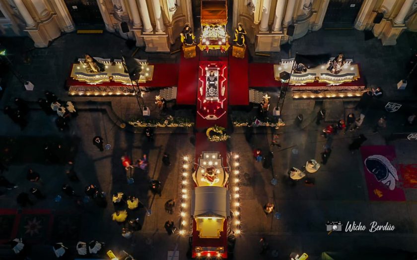 2. Fotografía aérea del Altar de veneración de la Consagrada Imagen del Cristo del Amor y Virgen de Dolores, Templo de Santo Domingo. Viernes Santo 2021: