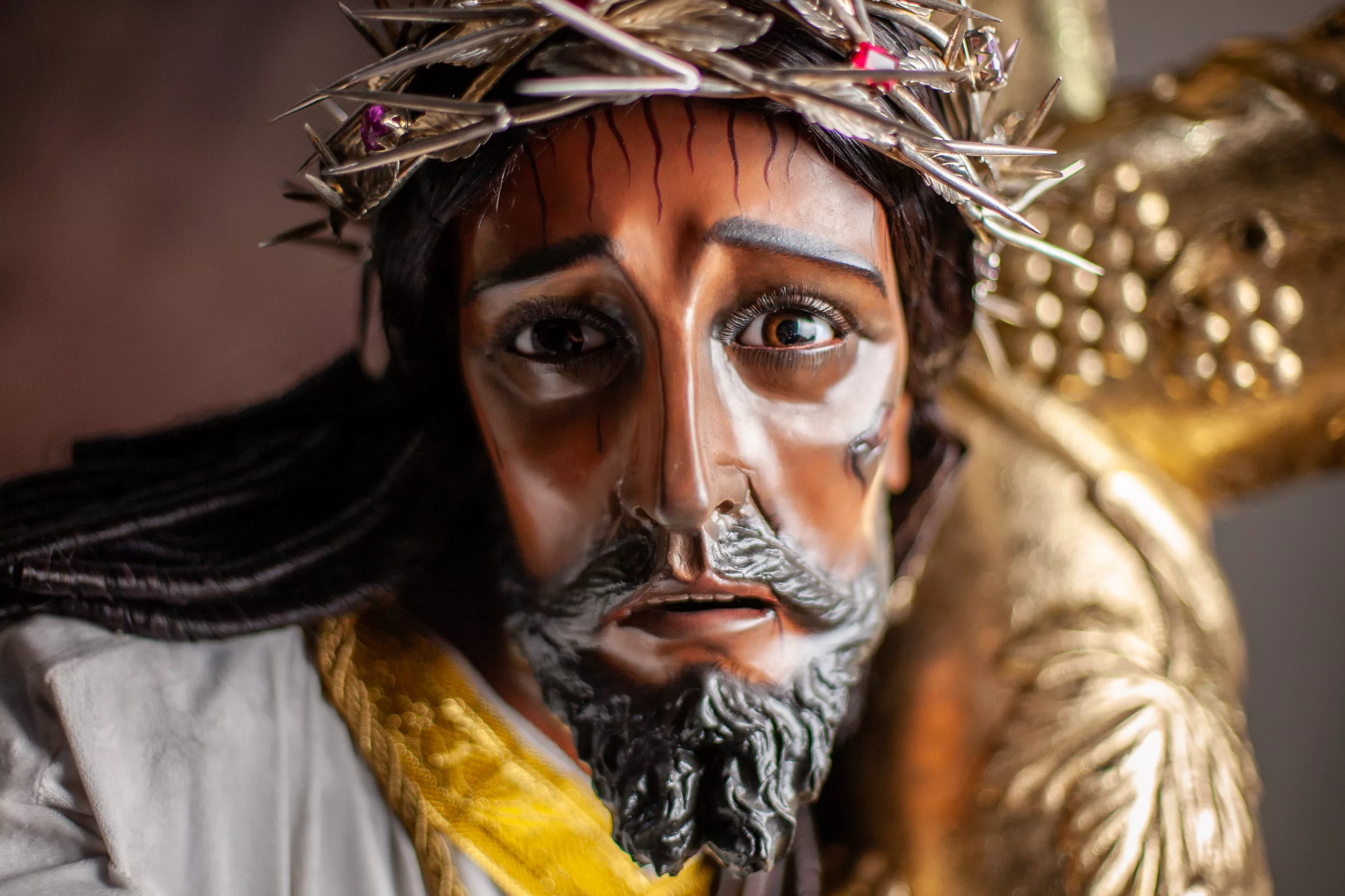Aunque la imagen en la actualidad denota tez morena, los estudios han revelado que su encarnado no es moreno, sino de un tono más claro y grisáceo, dejando ver líneas de sangre provocadas por la corona de espinas.