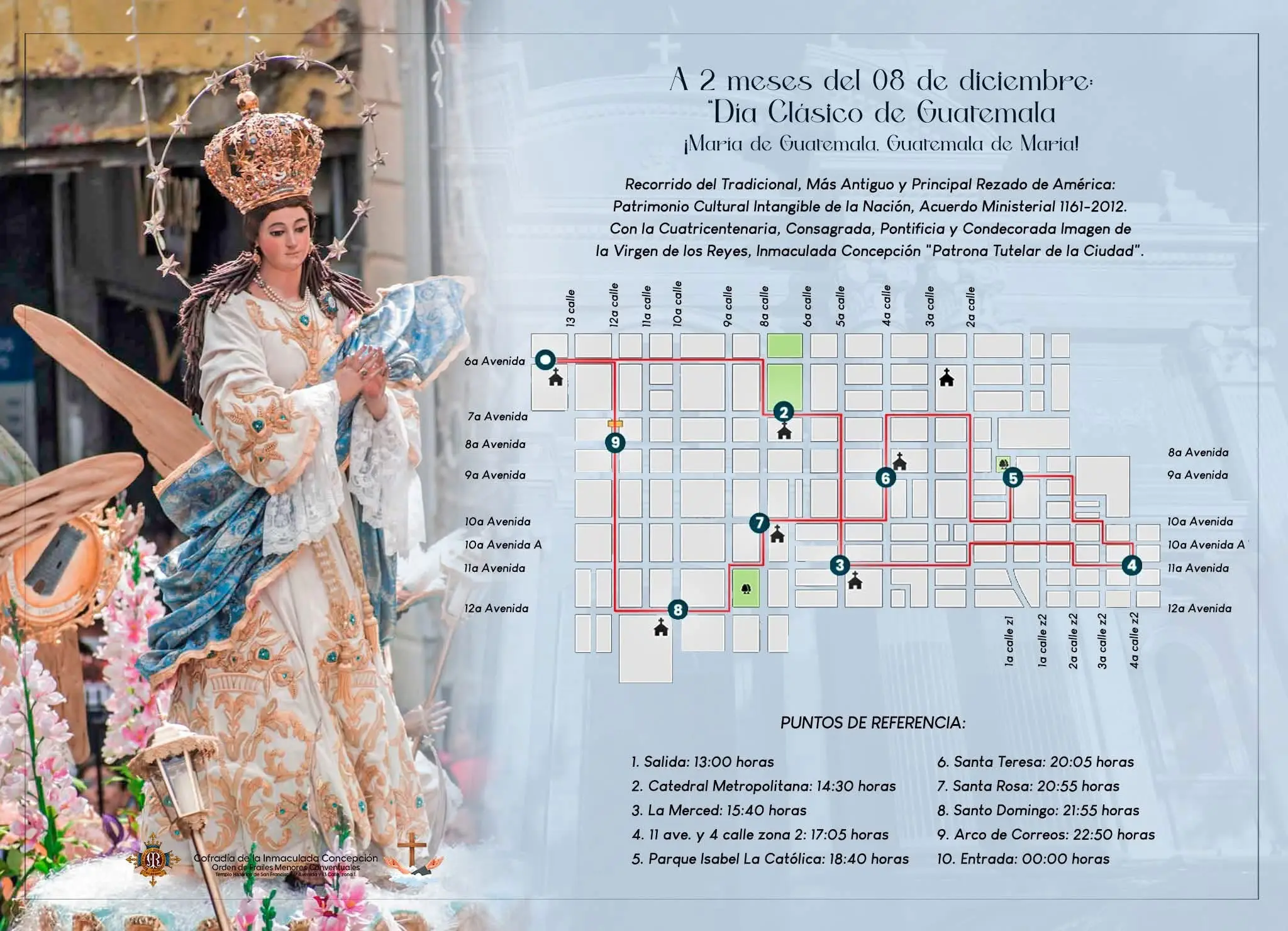 Aquí te dejamos el recorrido 2025 de la Inmaculada Concepción de San Francisco en su rezado tradicional del 8 de diciembre en la Ciudad de Guatemala.